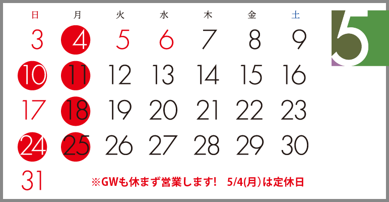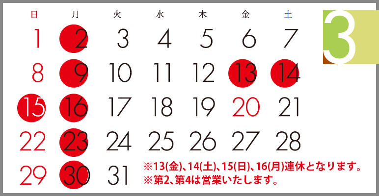 | 定休日 | 月曜日、第2.第4日曜日 |