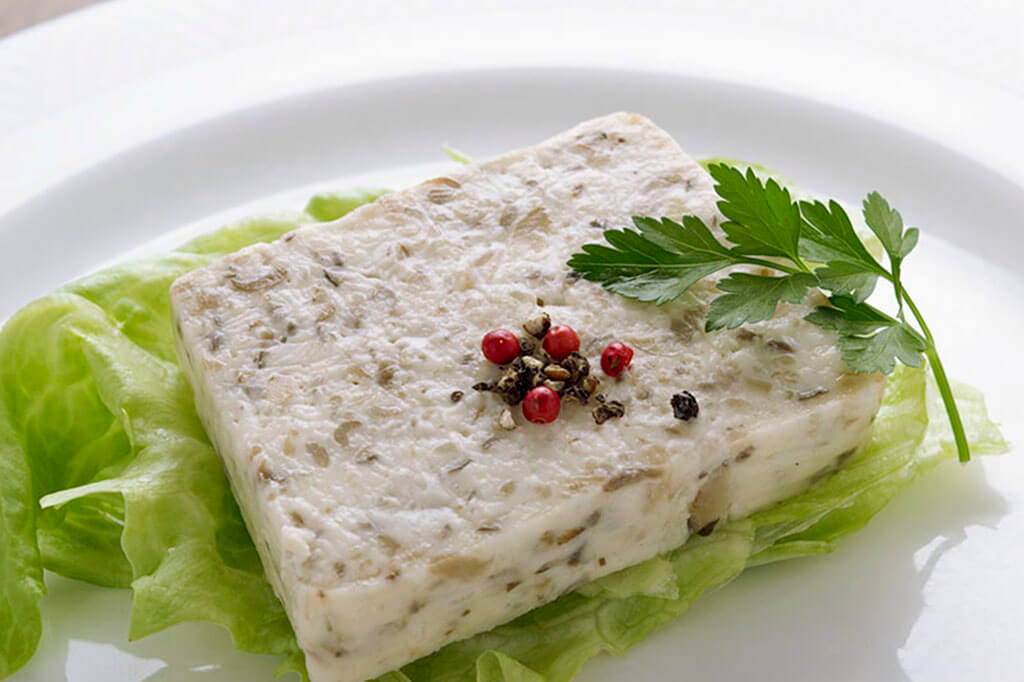 白身魚やホタテのすり身をベースに6種類のソテーしたキノコが入ったテリーヌ。