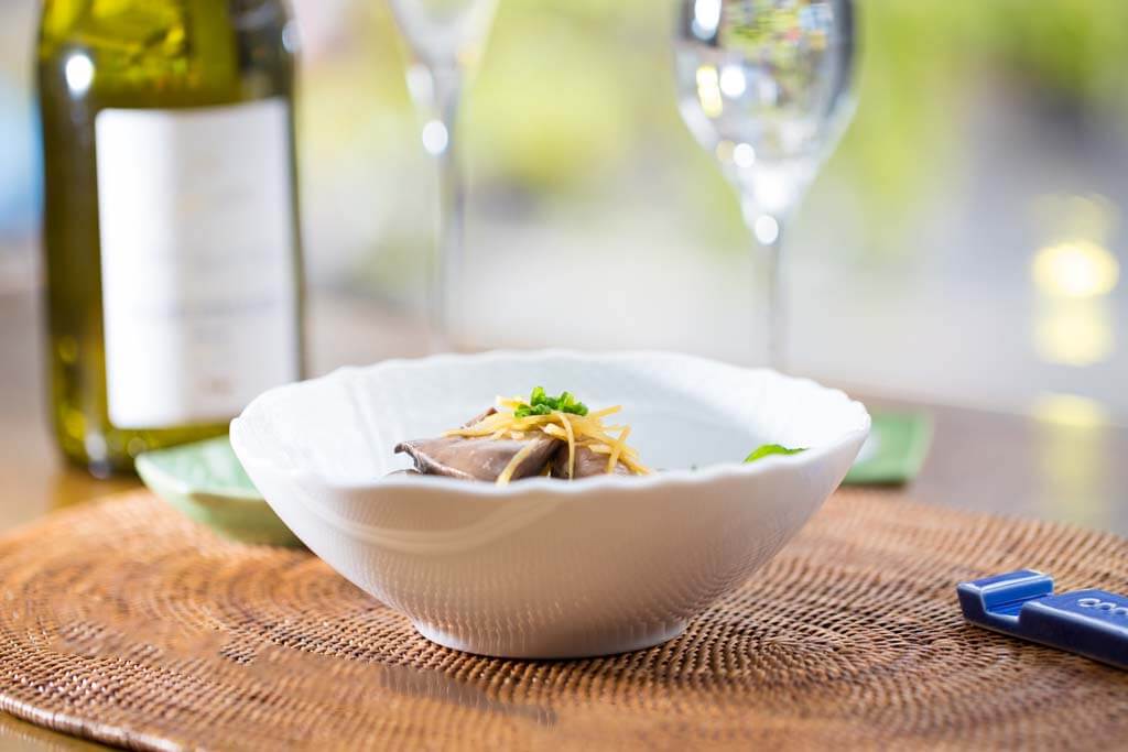 キノコをソテーし、ギリギリまで味を凝縮させたところにバルサミコで程よく甘味と酸味をつけました。ワインにもよく合います。