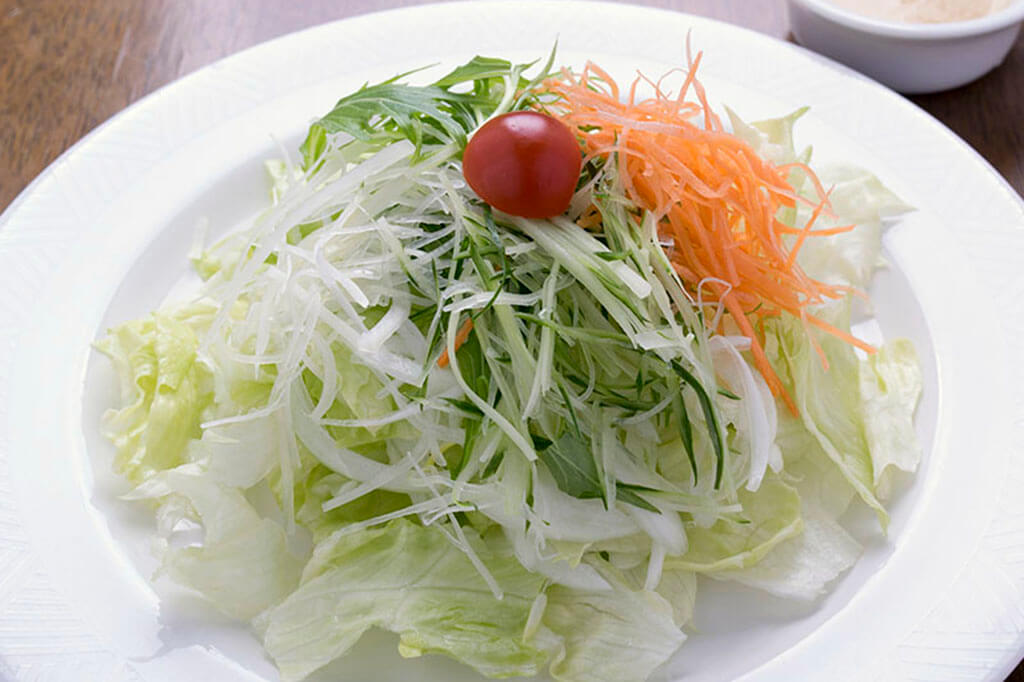 当店地下より湧き出る天然水で丁寧に洗ったレタスで作っています。